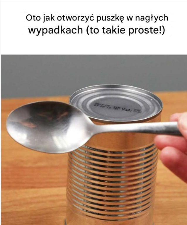 Następnie po prostu przesuwaj łyżkę wzdłuż krawędzi puszki, otwierając ją przy tym.